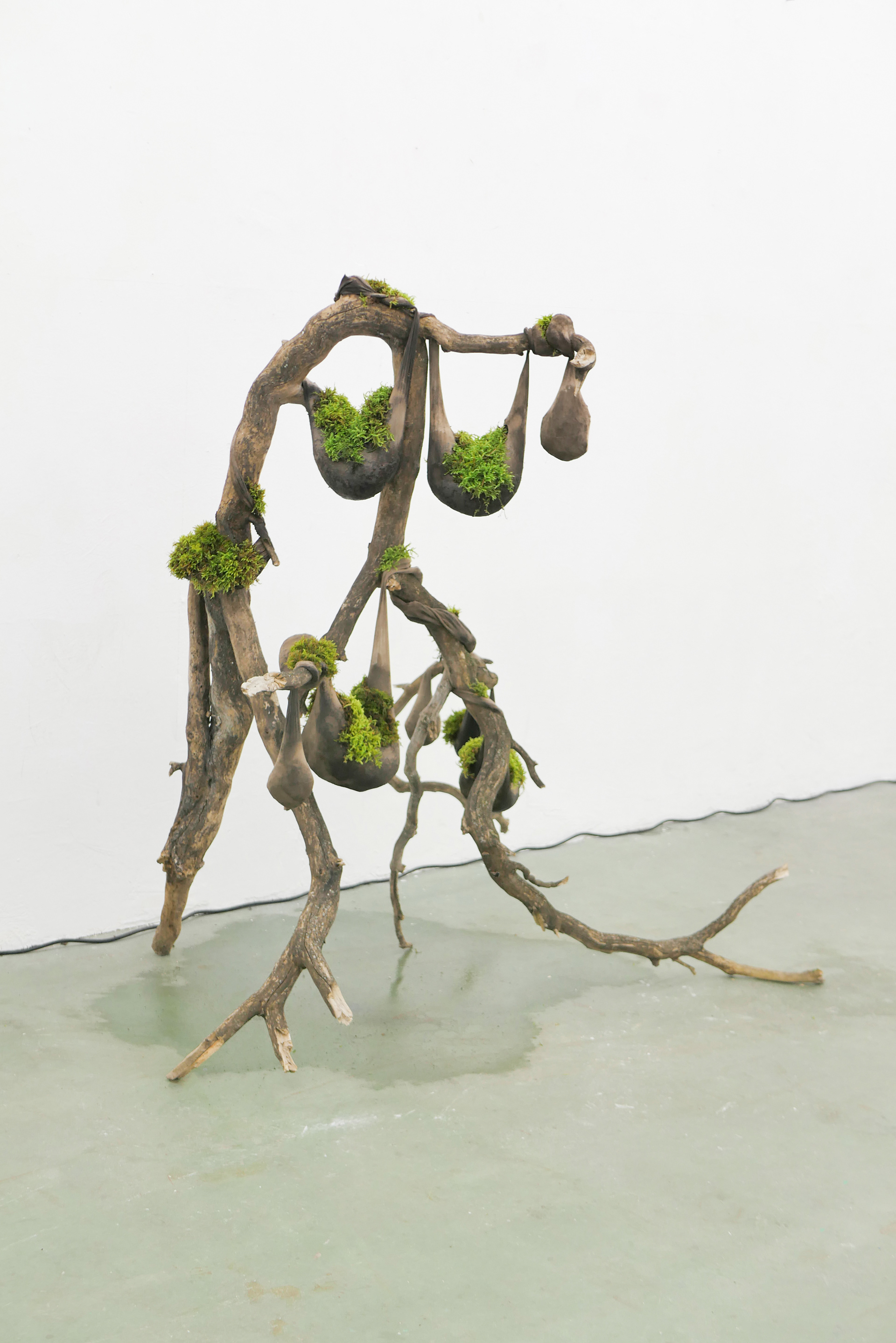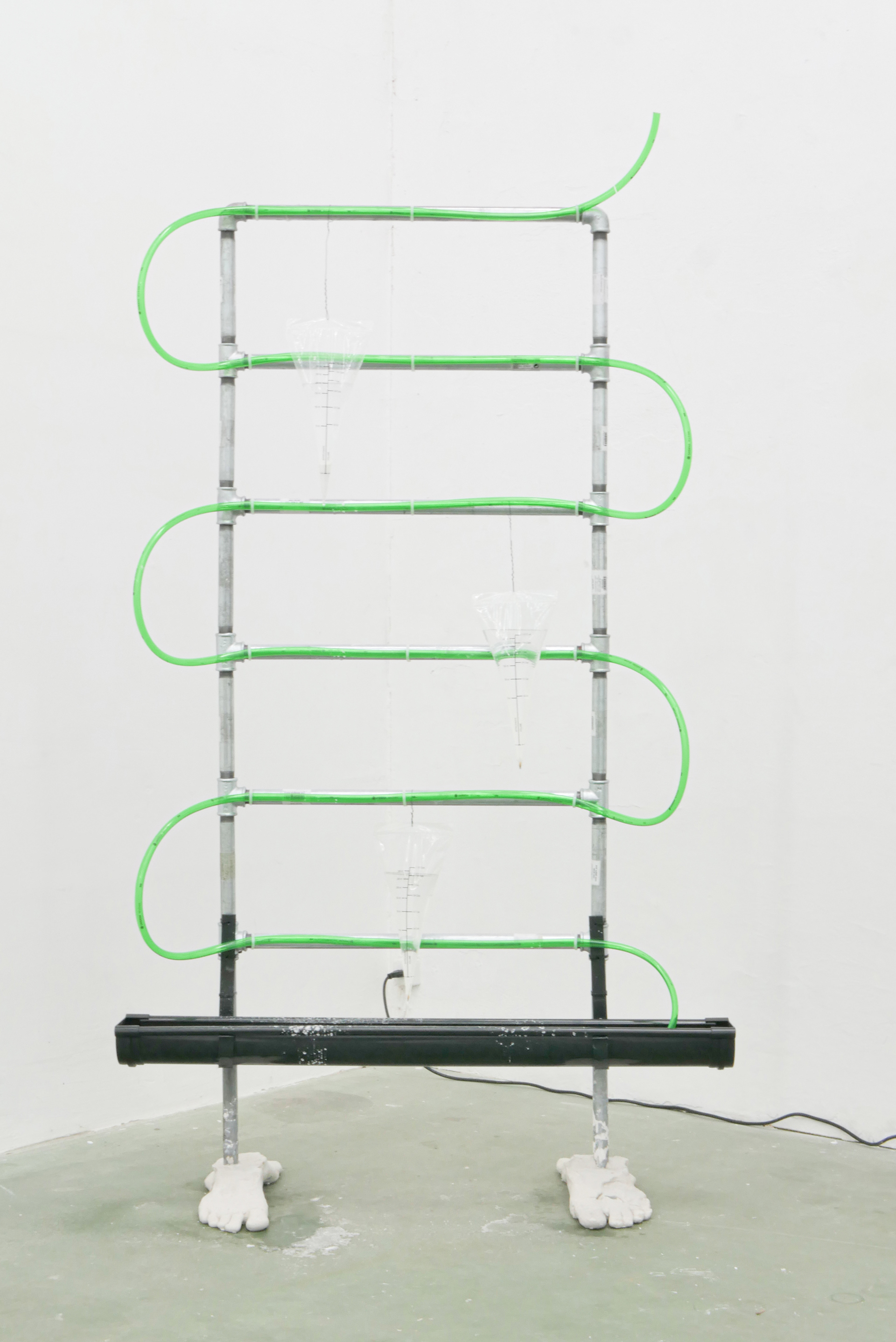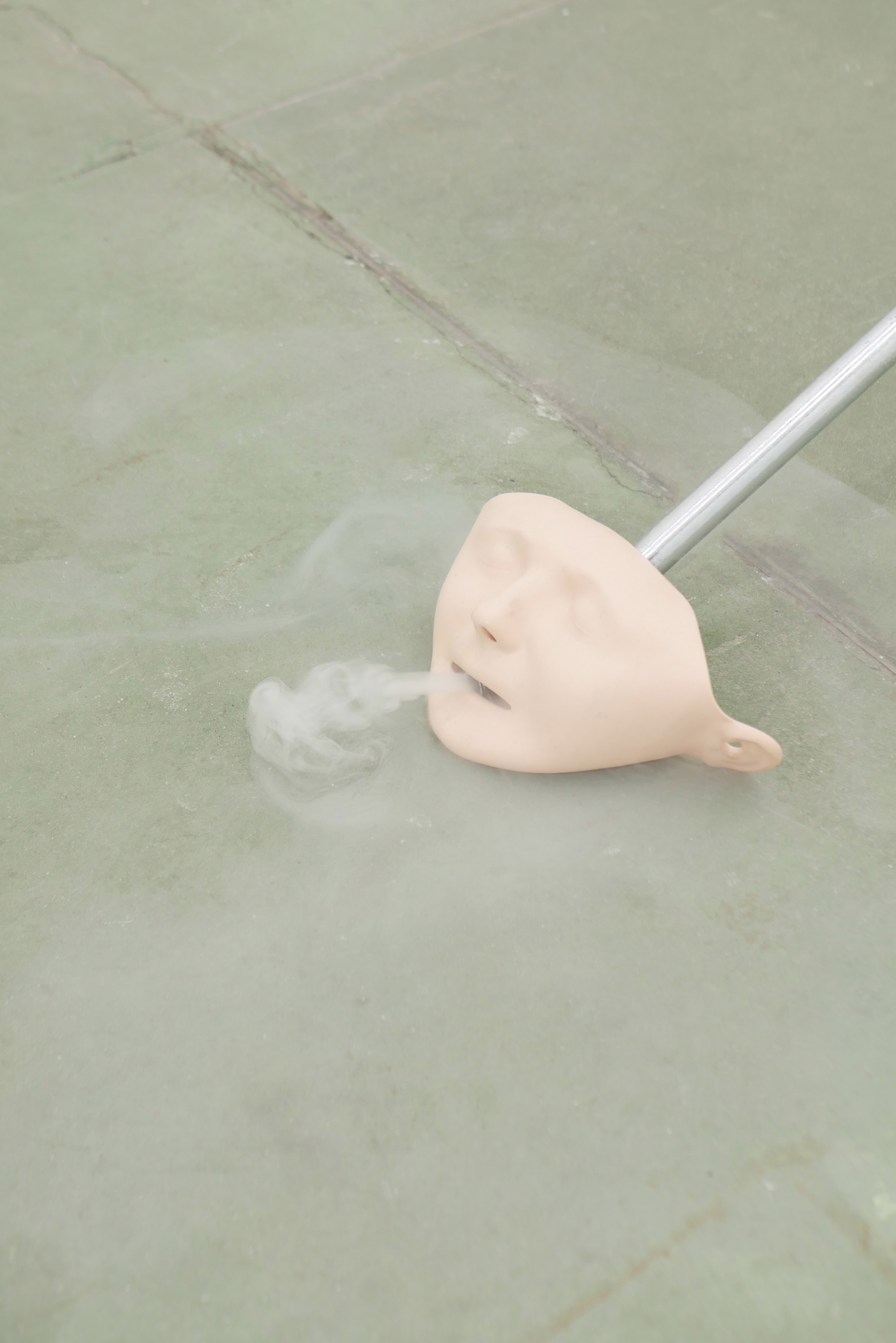 No saliva left to spit, glazed clay, glass, oxidised steel, water, xanthan gum,