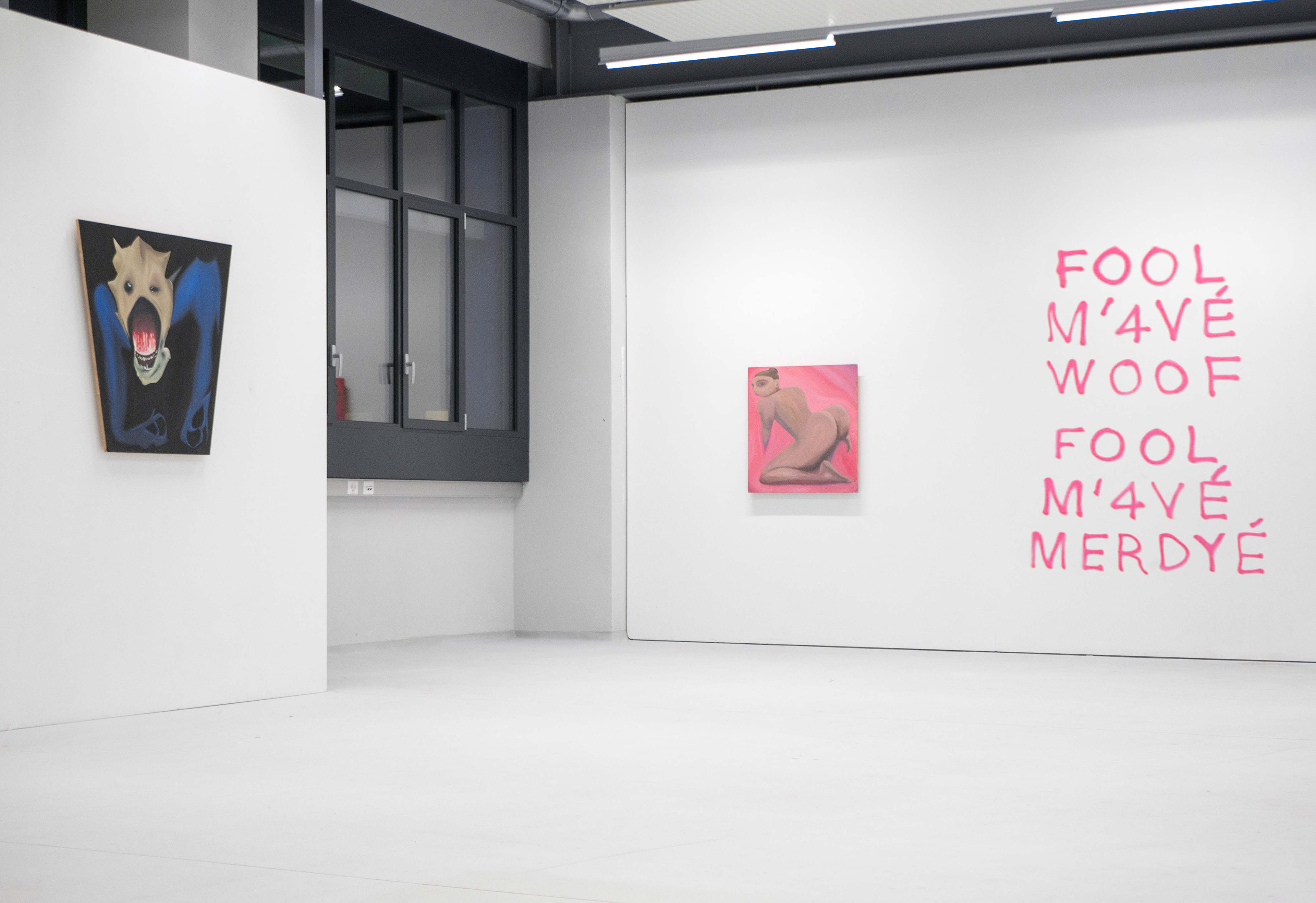 FOOL M’4VÉ WOOF, FOOL M’4VÉ MERDYÉ, sprayed acrylic on the wall,