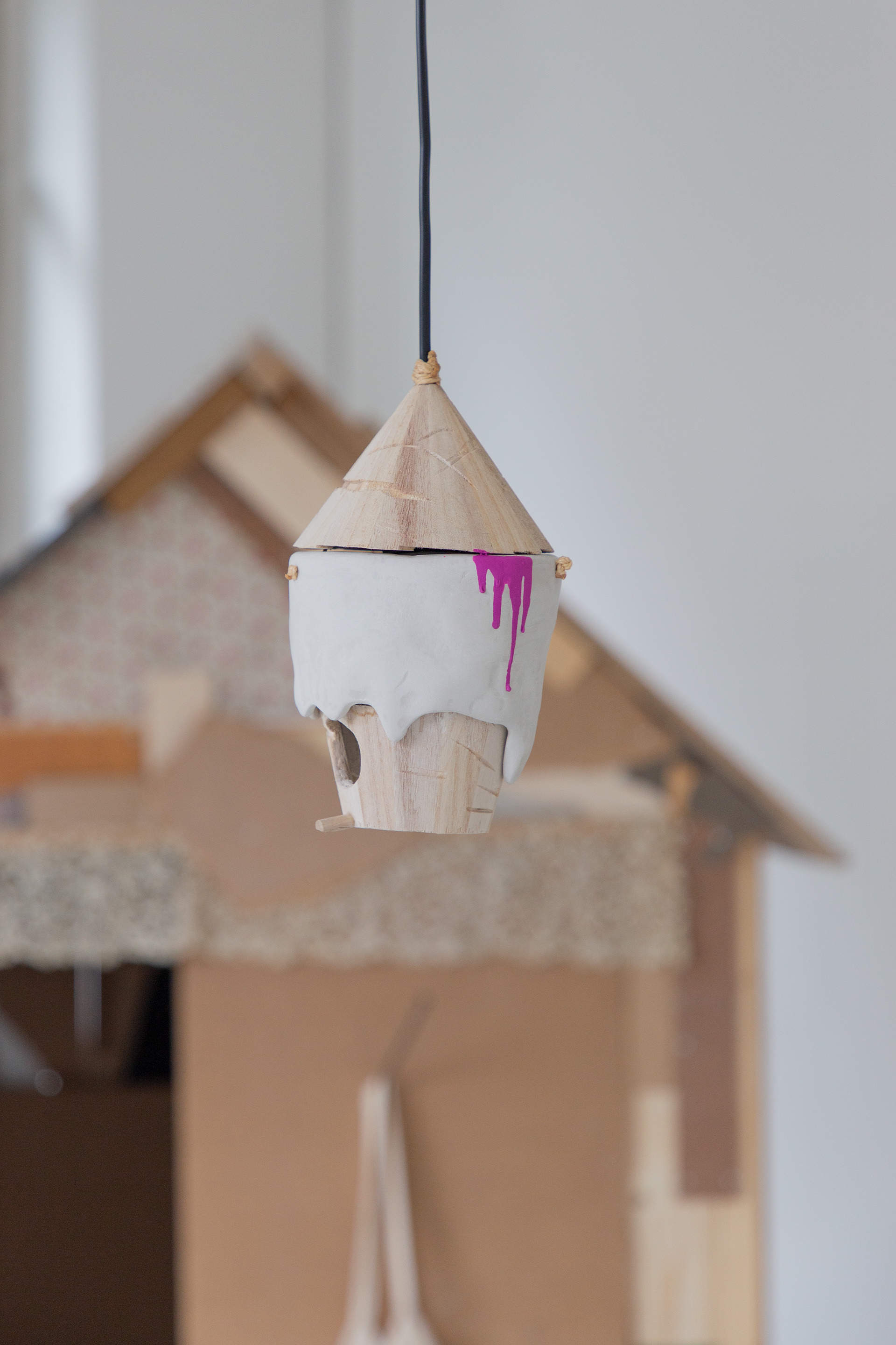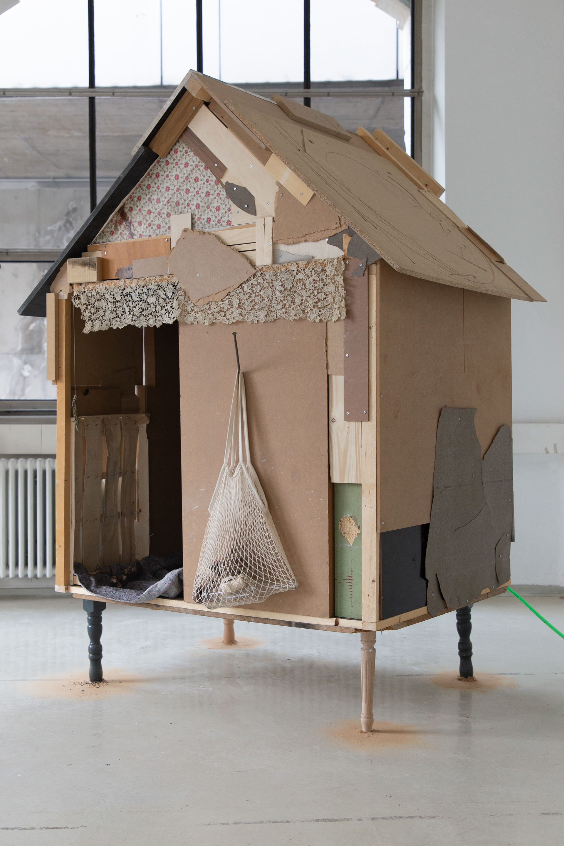 Wooden marottes hung on the wall and were adorned with bundles of different appearances. Symbols of our emotional baggage and our precious personal experiences that help us to move forward, they also evoke the major arcana ‘The Fool’ in the Tarot deck. This card, which has no number and is sometimes assigned the number zero, embodies the idea of a cycle, a state of transition, and constant transformation. Considered the first card of the Tarot, it symbolises an initiating energy and a certain naivety that allow us to move forward."